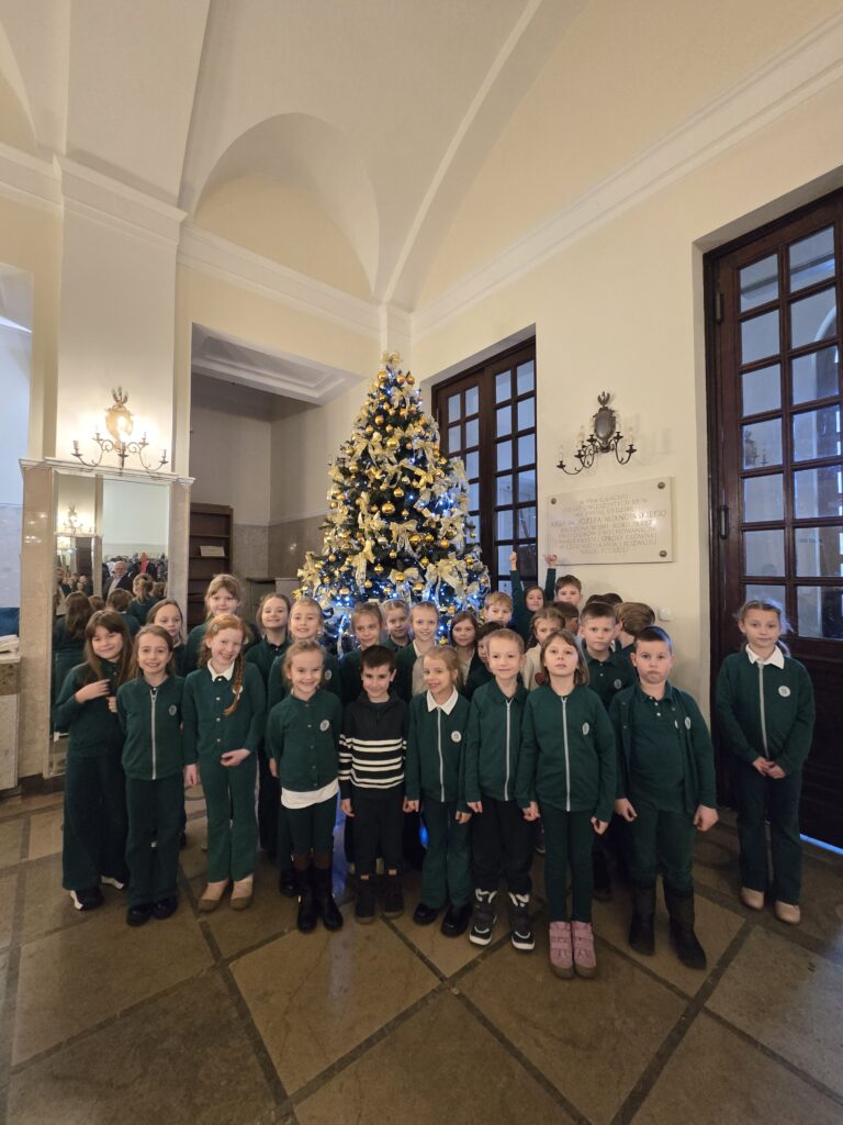Następnie uczniowie klasy pierwszej wkroczyli dostojnym krokiem, w rytm rozbrzmiewającego poloneza wywołując wzruszenie przybyłych gości. Przedstawili również program artystyczny, w którym zaprezentowali swoje umiejętności recytatorskie i wokalne.